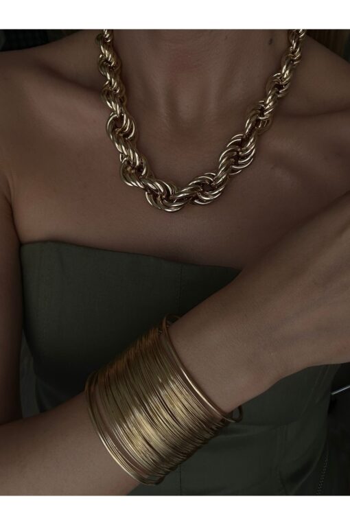 Genel Markalar Model Kalın Taşlı Çelik Altın Rengi Bileklik B Kalite
