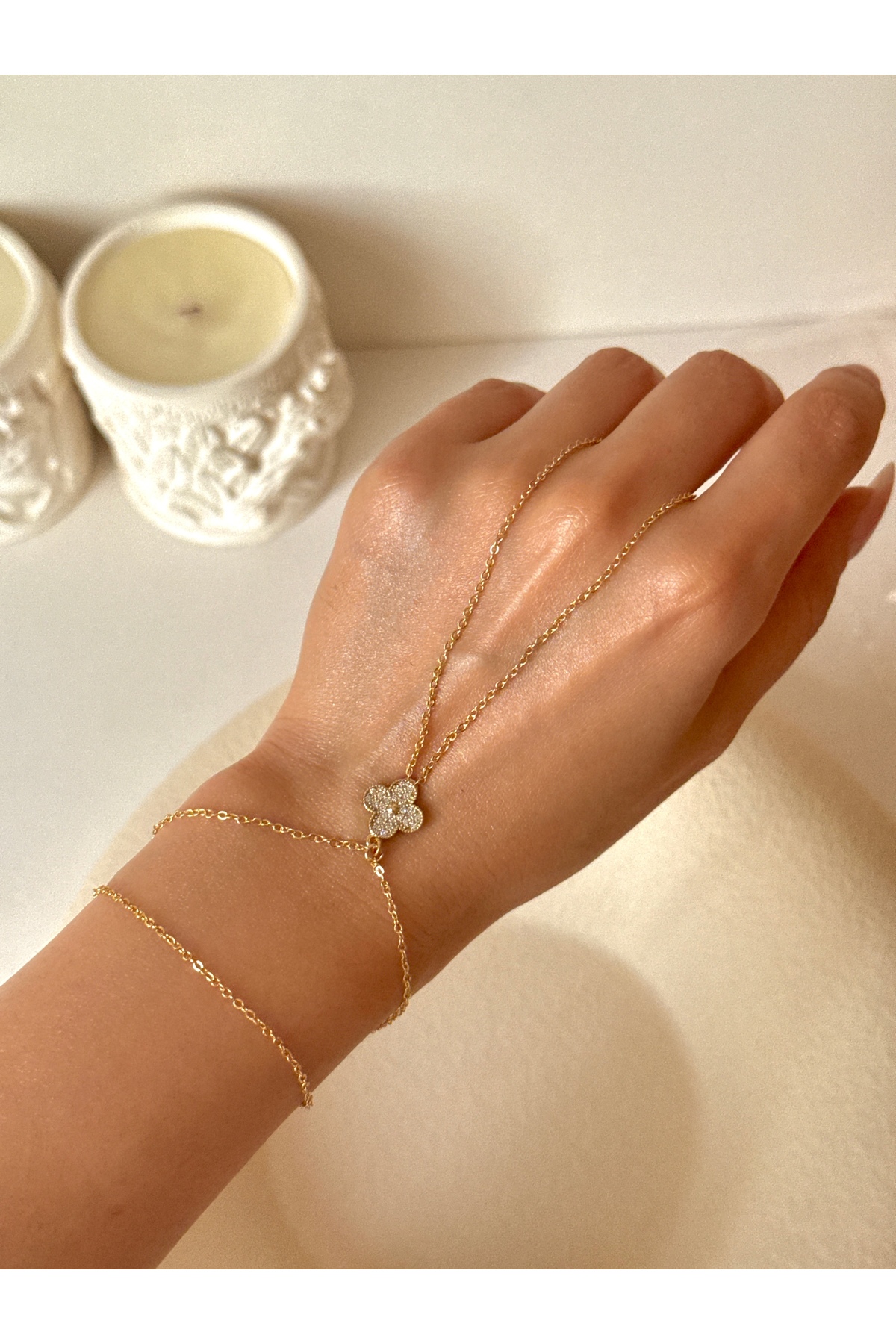 pop up store 14k Altın Kaplama Üçgen Model Taşlı Şahmeran / El Aksesuarı