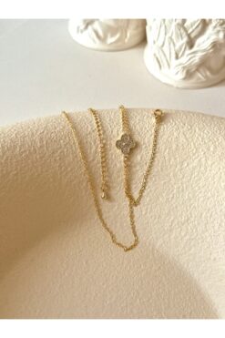 YOUES JEWELRY ÇELİK 14k Altın Renk Şahmeran Bileklik Gold Kadın Yonca Taşlı Şahmeran