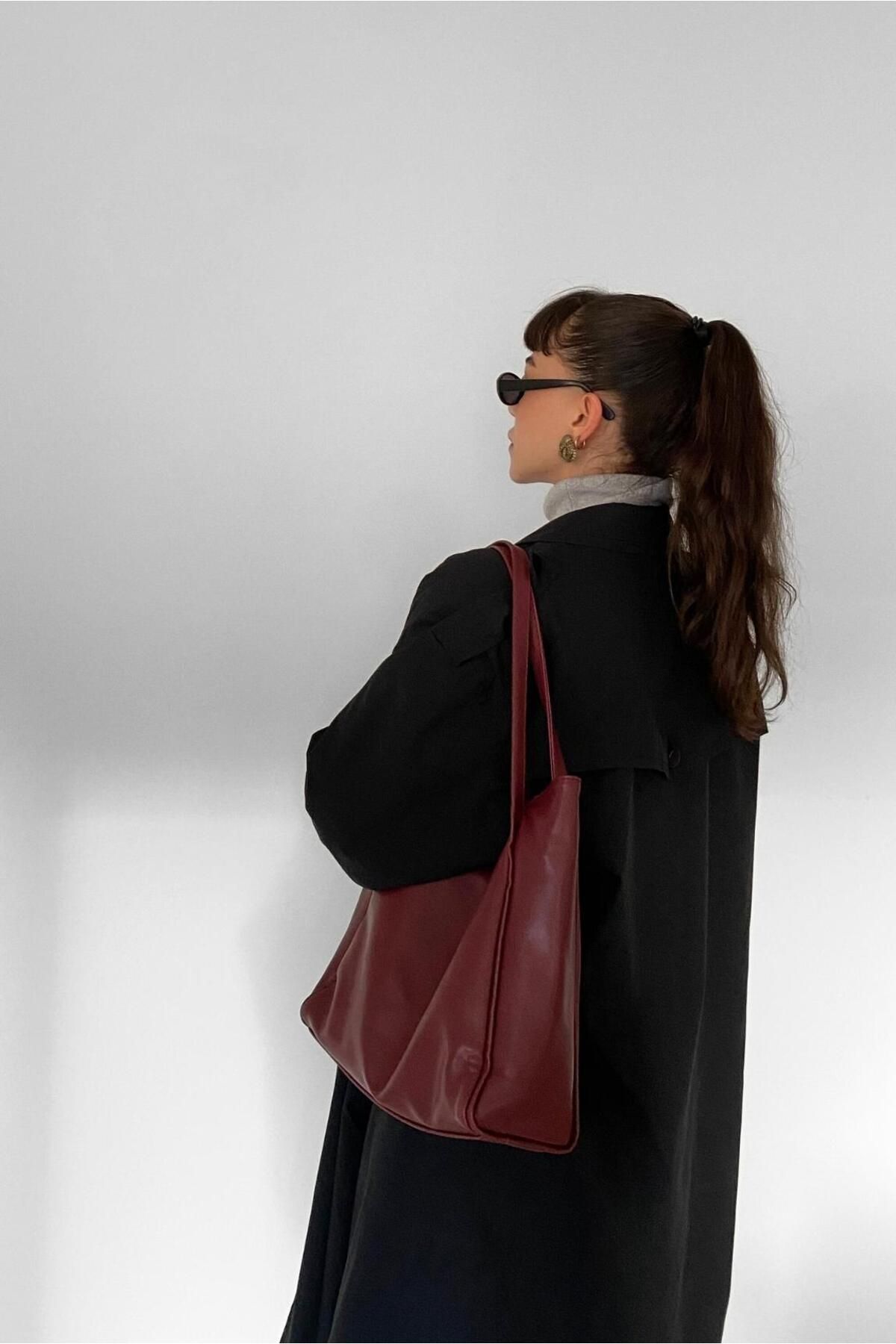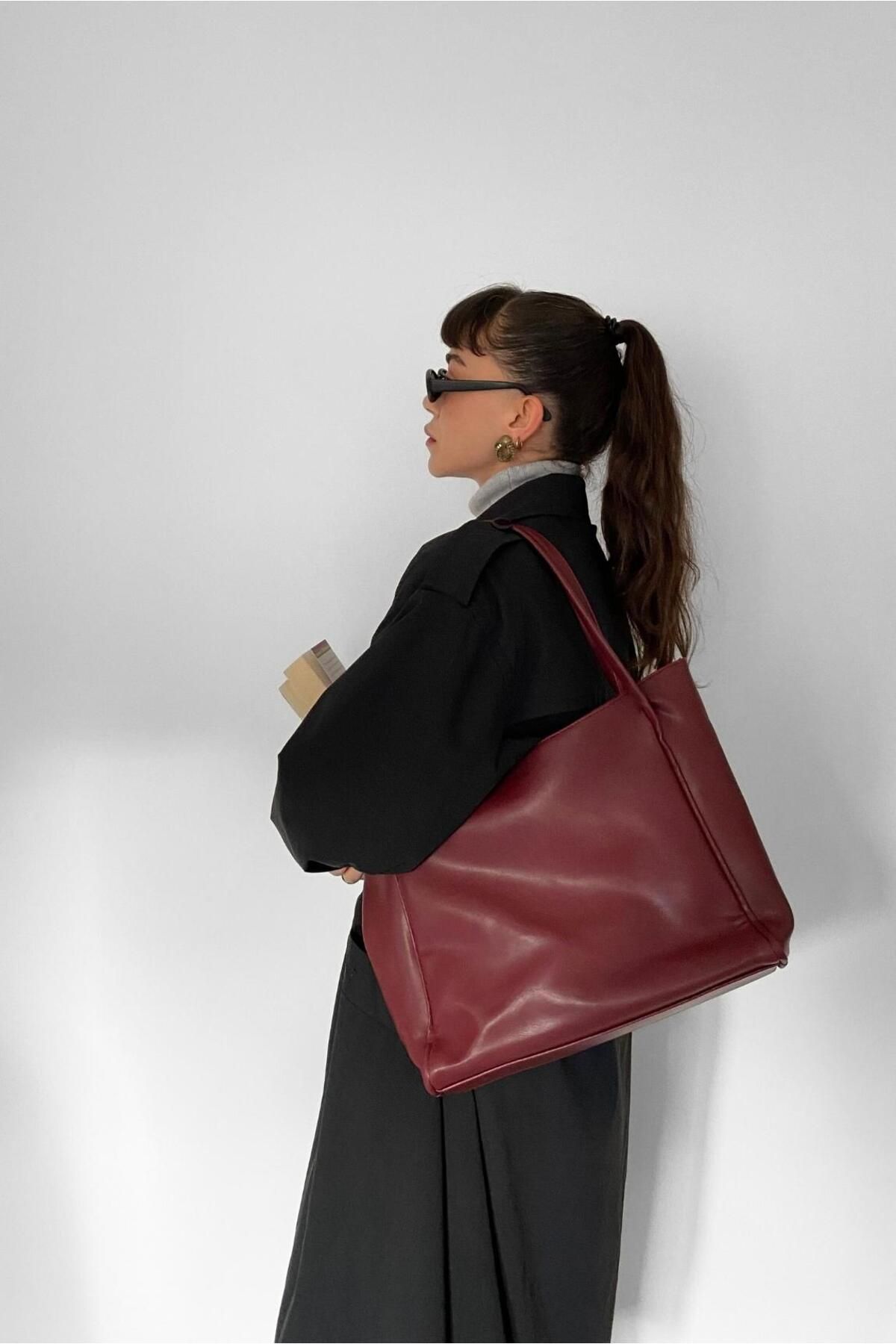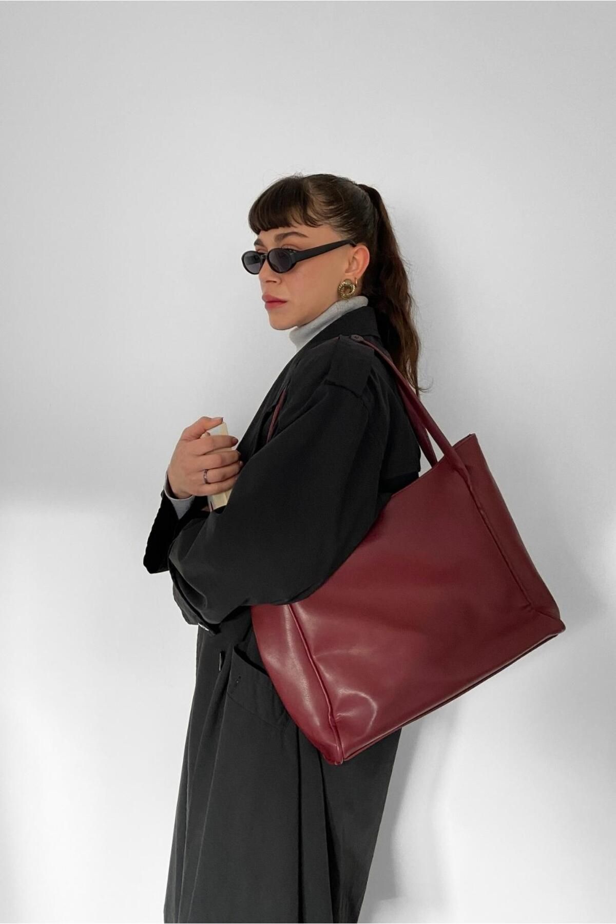 Yuka Atelier Nou Çift Saplı Bordo Büyük Boy Kadın Shopper Çanta