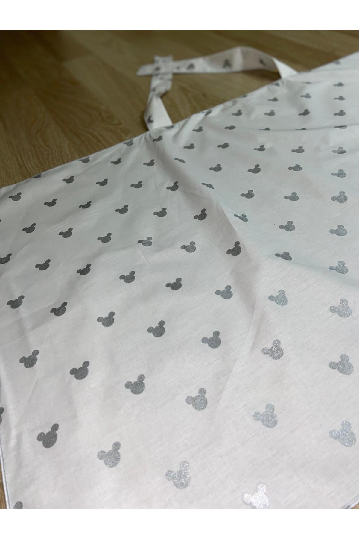 YUSRAMODA GÜMÜŞ MICKEY MOUSE DESENLI EMZİRME ÖRTÜSÜ