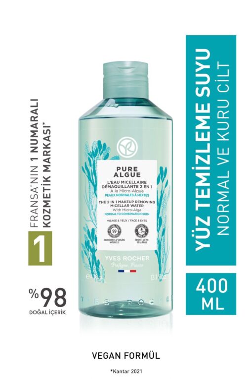 Yves Rocher Normal ve Kuru Cilt, Antioksidan, Prebiyotik Micellar Makyaj Temizleme Suyu-Pure Algue-400ml