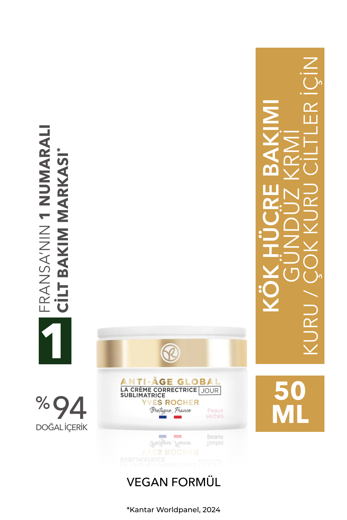 Yves Rocher Yaşlanma Karşıtı Bitkisel Kök Hücre Bakımı Anti-Age Global - Hyaluronik Asit -Kuru Cilt Gündüz Kremi ürünü ucuz fiyat, hızlı kargo imkanı ile hemen sitemizden sipariş verin.