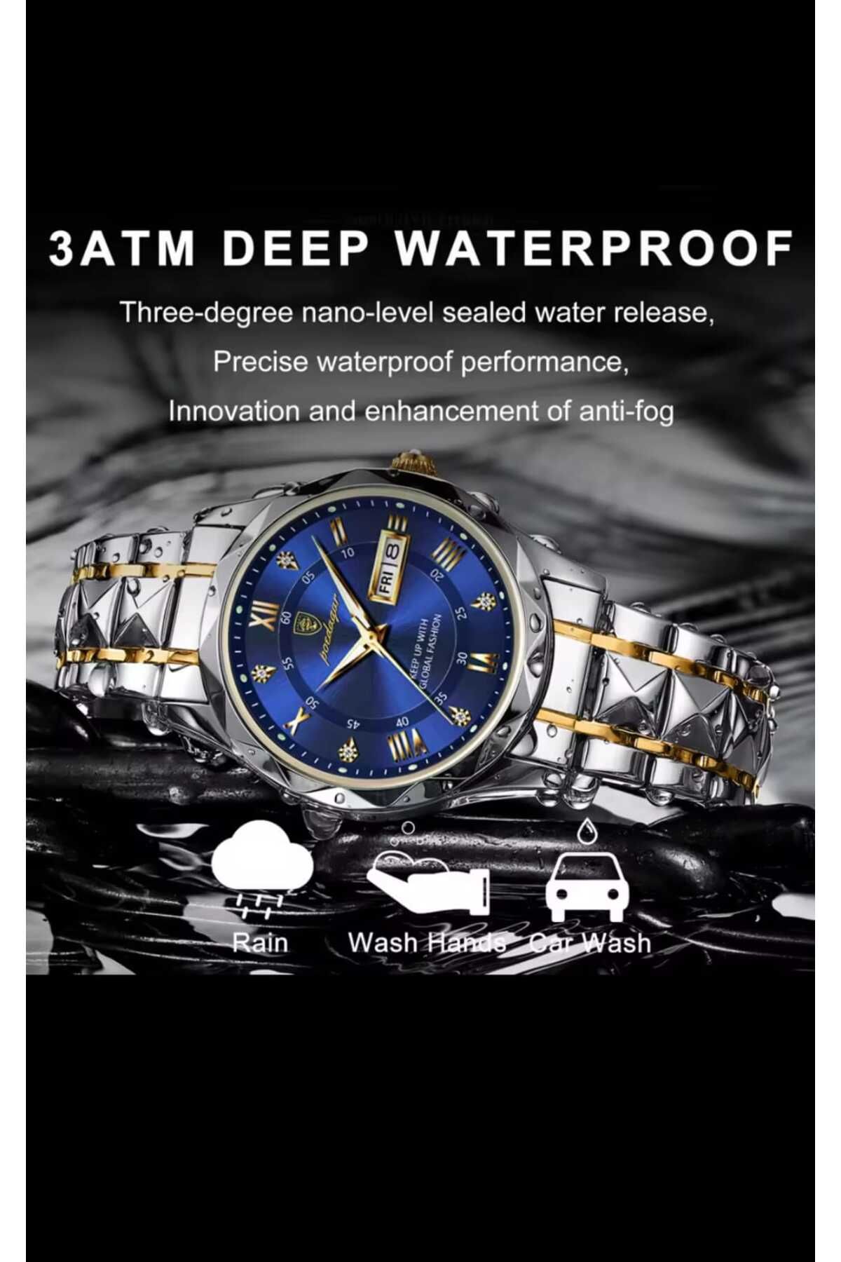 – 3 ATM su geçirmezlik özelliği, günlük kullanımda su sıçramalarına karşı koruma sağlar.