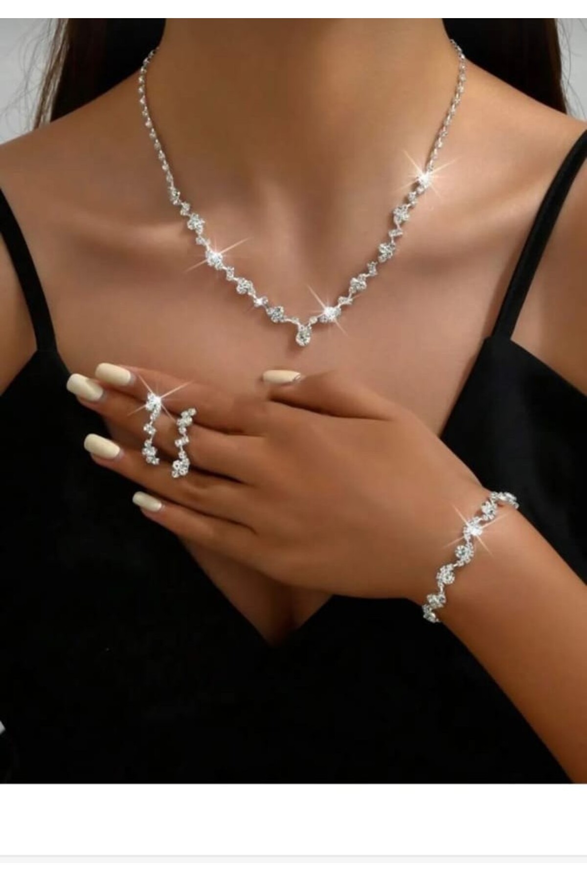HUBANN Gümüş Kaplama Su Yolu Stonefans Kolye Küpe Ve Bileklik Seti Gelin Takı Seti Nişan Seti Parti Davet S
