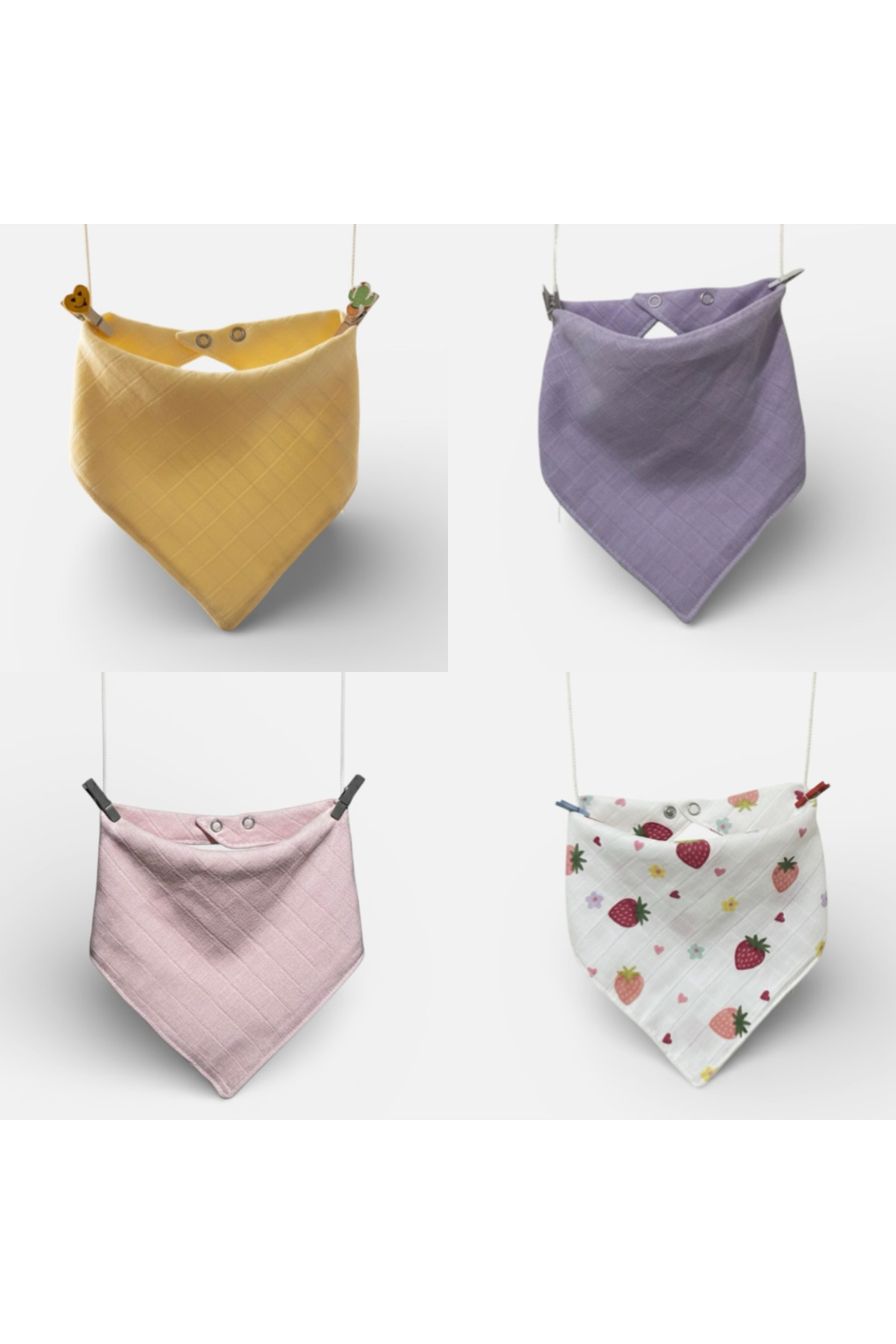Zenkova %100 Organik Pamuk Çift Katlı iki Çıtçıtlı Müslin Bebek Fular & Salya Önlük 4 Adet