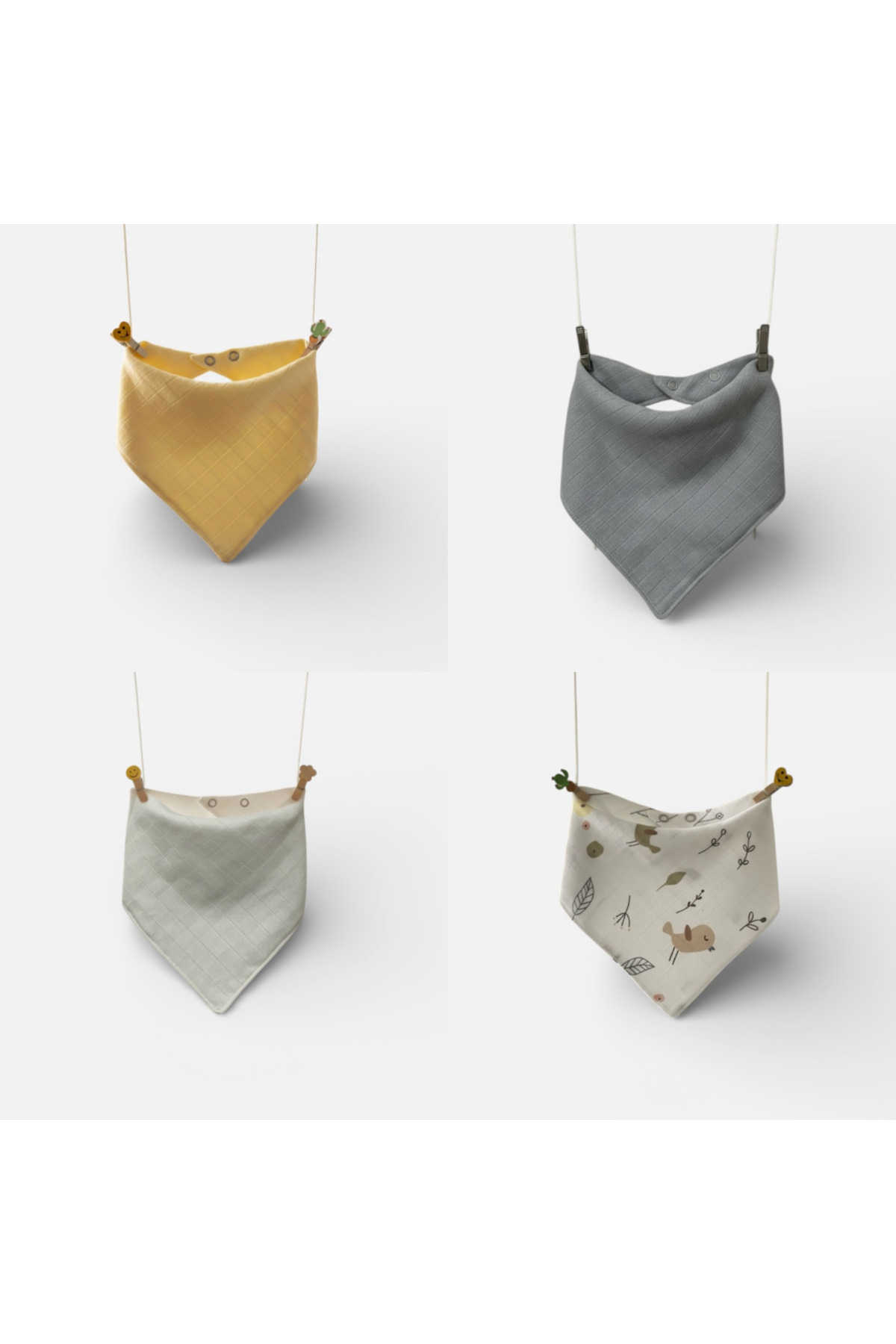 Zenkova %100 Organik Pamuk Çift Katlılki Çıtçıtlı Müslin Bebek Fular & Salya Önlük 4 Adet
