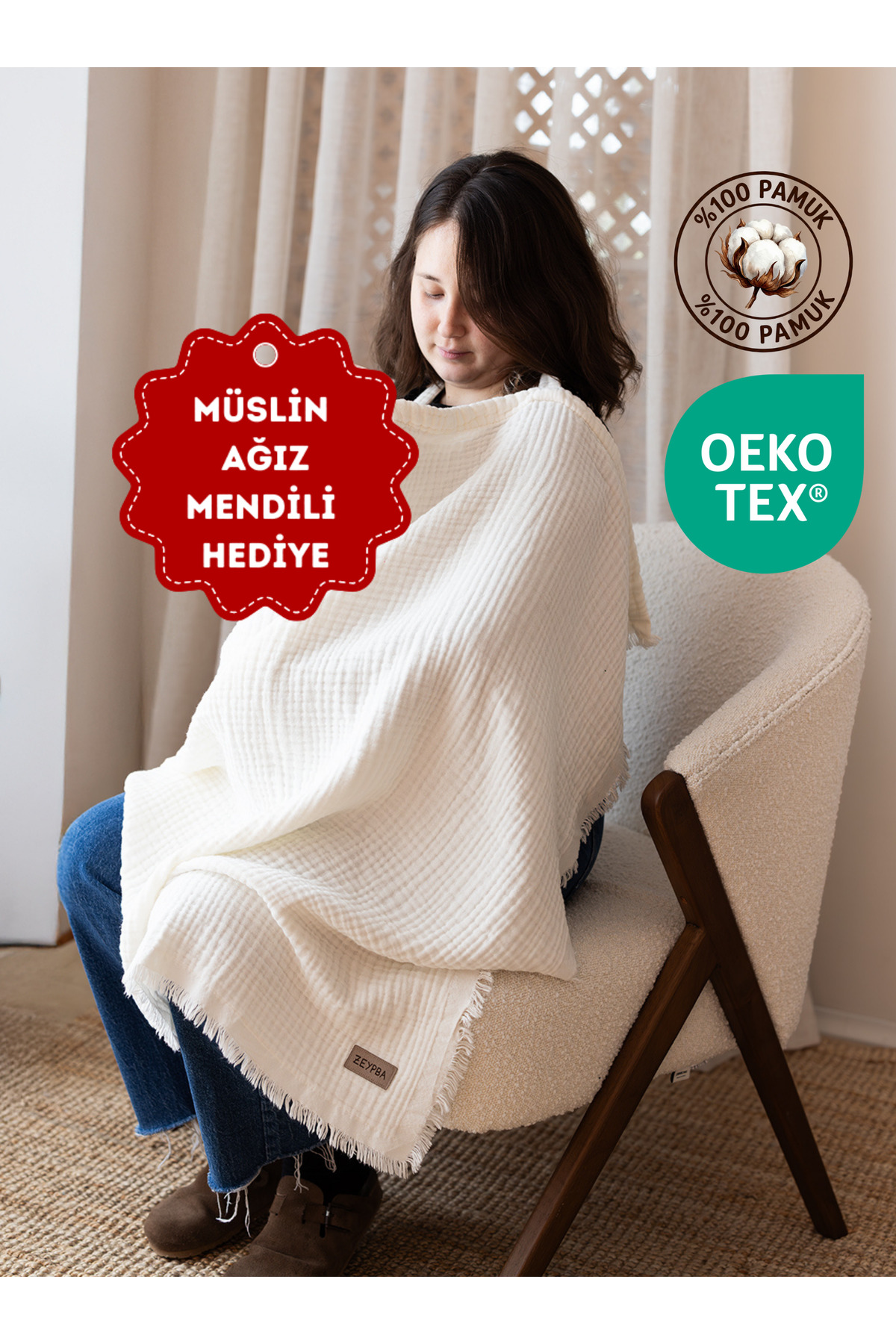 ZEYPBA Ekru 4 Katlı Müslin Emzirme Örtüsü & Puset Örtüsü Püsküllü 90x110cm ürününü en uygun fiyata kozmetikara.com sitemizden sipariş verebilirsiniz.