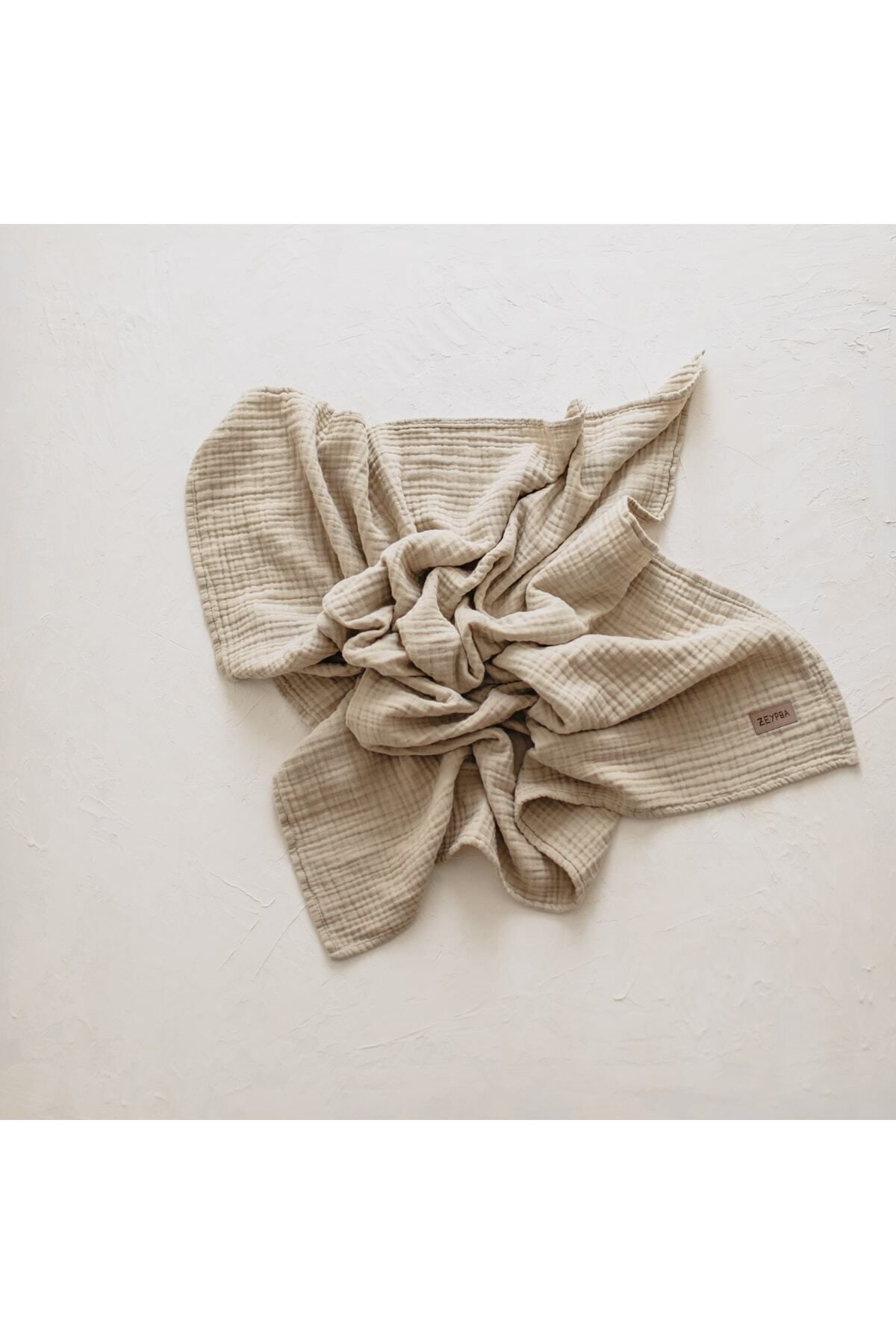 ZEYPBA Kenar Dikişli Bej Müslin %100 Pamuk Müslin Örtü 4 Katlı Müslin Battaniye 100x100cm