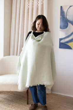 ZEYPBA Suyeşil 4 Katlı Müslin Emzirme Örtüsü & Puset Örtüsü Püsküllü 90x110cm