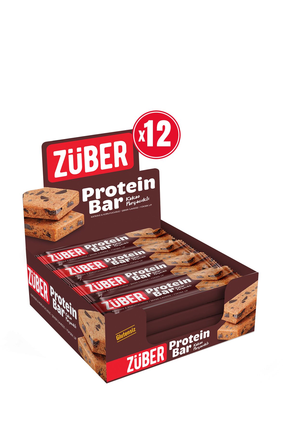 Züber Kakao Parçacıklı Protein Barı - 12 Adet x 35Gr
