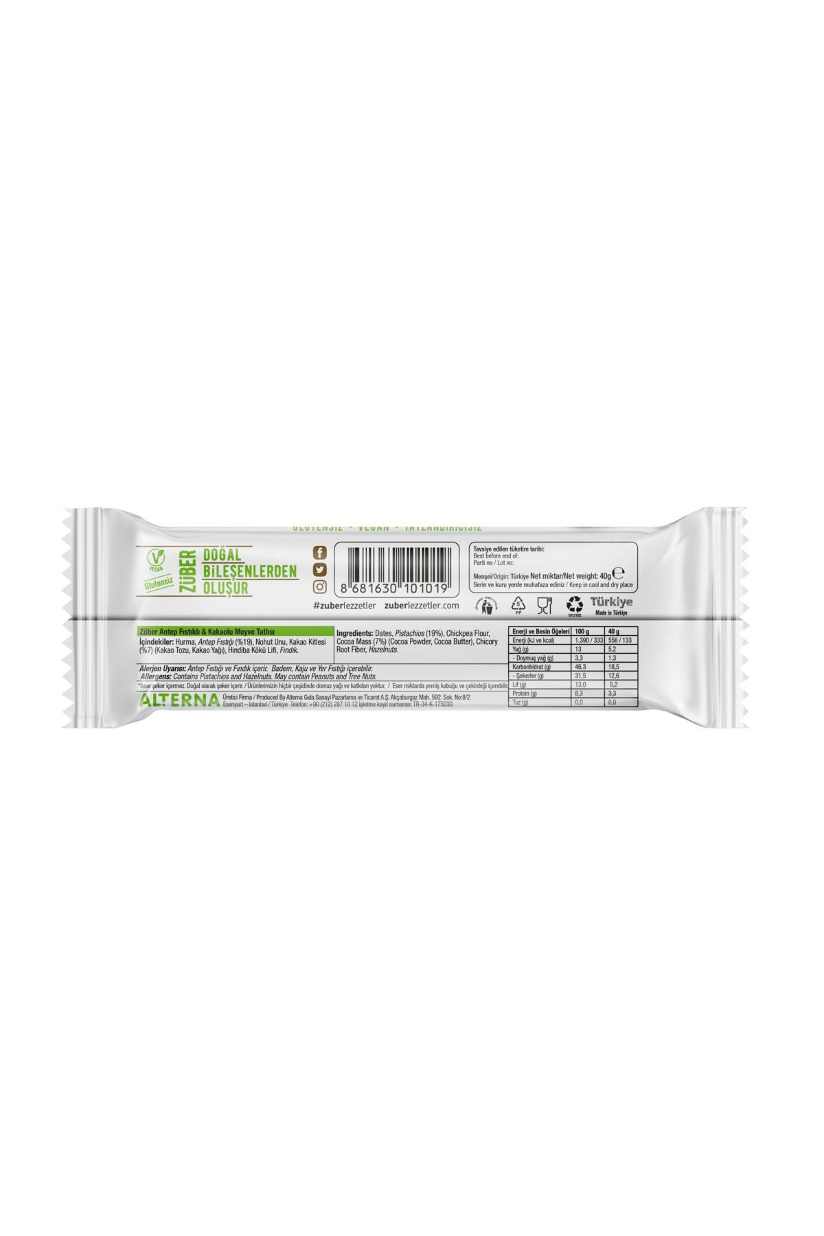 Züber Meyveli Bar Şöleni 40gr x12 Adet (Antep Fıstıklı,Yer Fıstıklı,Çilekli,Fındıklı,Portakallı, Van