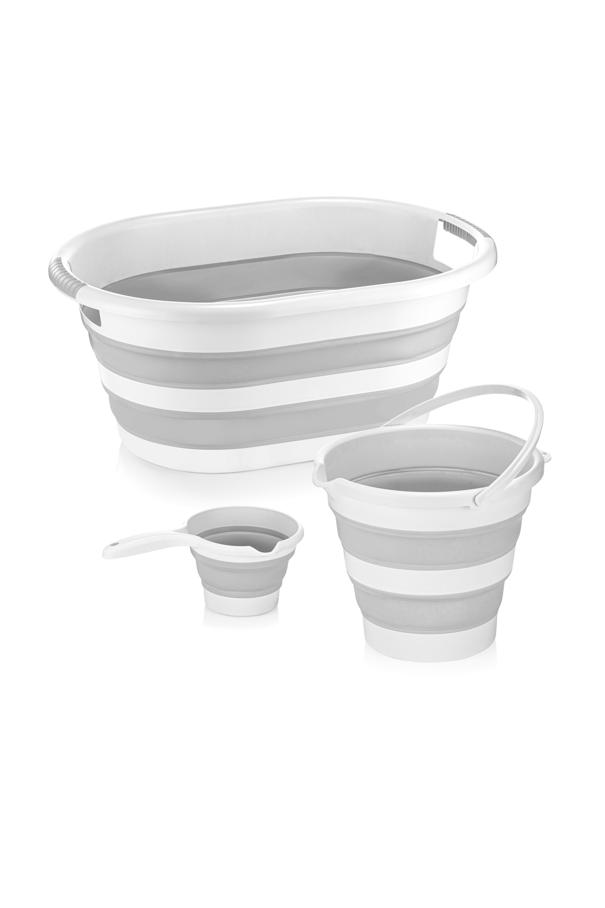 Zuu Baby 3’lü Katlanır Bebek Yıkama Seti Bebek Banyo Küveti Büyük Boy – Su Kovası – Maşrapa Gri