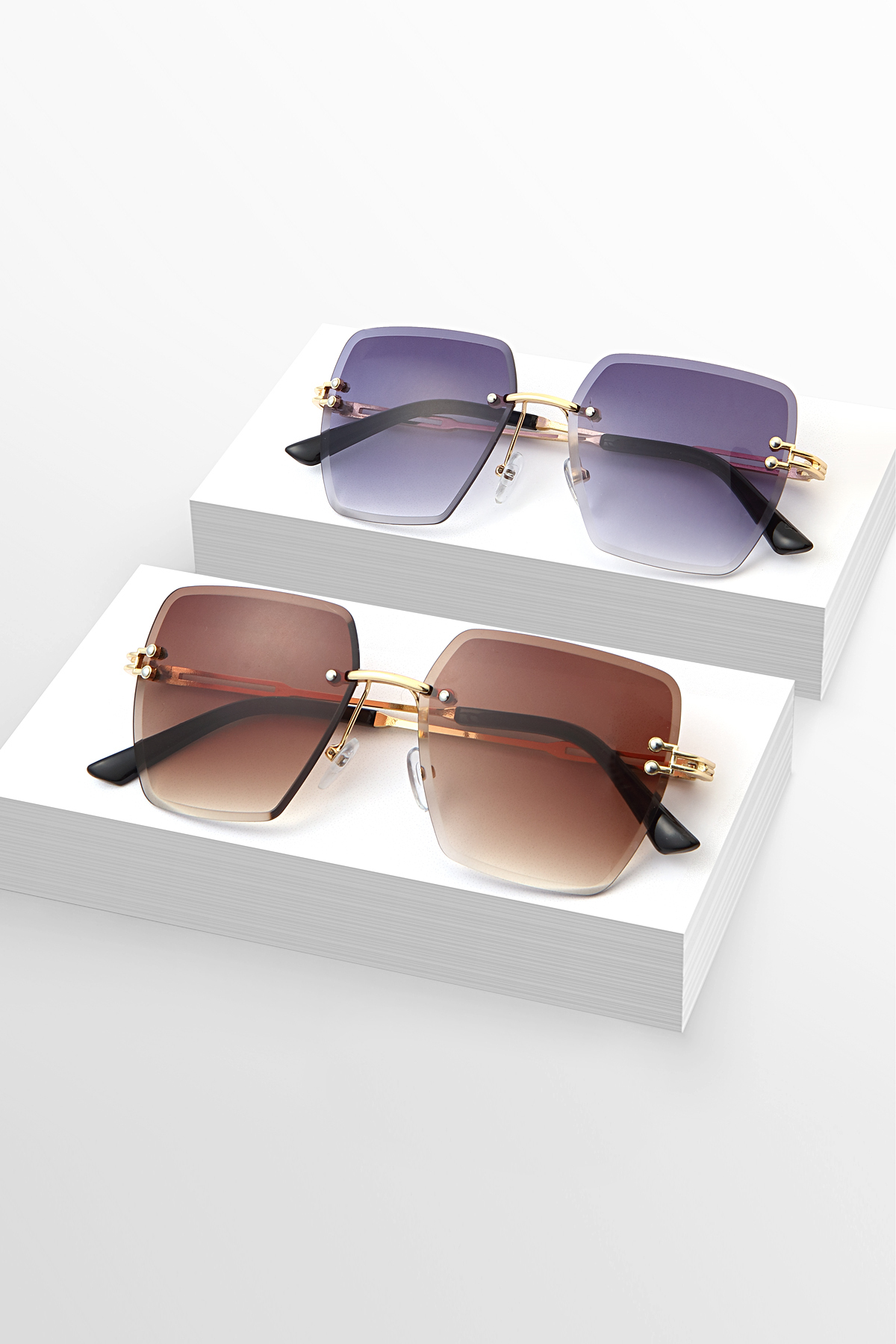 Zzla 2li Kare Kesme Kristal Siyah Kahverengi Güneş Gözlüğü