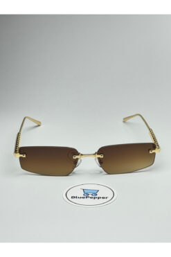 Chunky Frame Gold Metal Çerçeveli Beşgen Unisex Güneş Gözlüğü