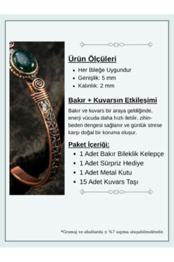 OSMANLI GÜMÜŞ Bakır Kelepçe Bilezik Yeşil Akik Doğal Taş Erkek Kadın Kuvars Taşı ve Metal Kutulu