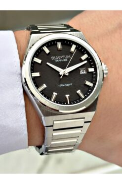 Quantum Takvimli Gümüş-Siyah Renk Safir Cam Çelik Kordon Çelik Kasa Erkek Kol Saati 1260MR