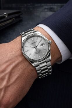 SEES AKSESUAR Erkek Kol Saati Gümüş Kadran Çelik Kordon Quartz Takvimli Klasik Tasarım