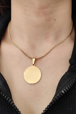 Chavin Yuvarlak Gold Madalyon Çelik Kadın Kolye eb36sr