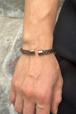 HERİF Aksesuar Erkek Klasik Örgü Kelepçe Çelik Bileklik – Bakır Renk