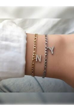PURE BERRY ZİRKON TAŞLI BAŞ HARFLİ ÇİFT SEVGİLİ ARKADAŞ DOSTLUK BİLEKLİĞİ %100 ÇELİK(HARF BELİRT) 2 ADET