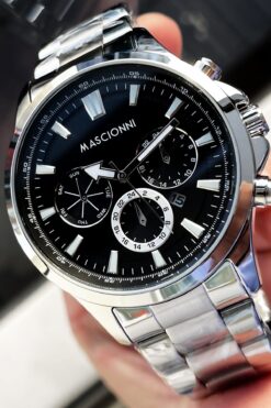 mascionni Erkek Kol Saati 3 Atm Su Geçirmez Gümüş Renk Çelik Kordon + Doğaltaş Elg383