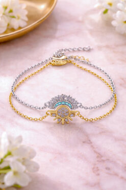 The Collection 2’li Gökyüzü Mavisi Işıltılı Güneş ve Hilal Ay Çift Arkadaşlık Sevgili Bileklik