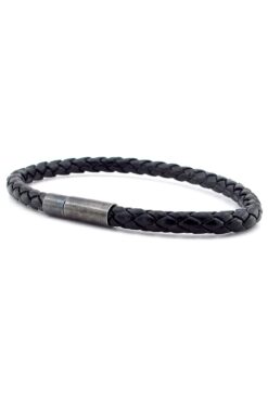 Solfera Siyah Çapraz Örgü Deri Antrasit Klipsli Erkek Bileklik M041f