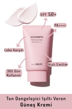 THE SAEM Eco Earth Pink Sun Cream SPF 50+ PA++++ 50 gr / Ton Eşitleyici Pembe Güneş Kremi