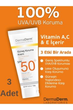 DermaDerm Spf 50 Faktör 100 ml Güneş Koruma Kremi 3 Adet