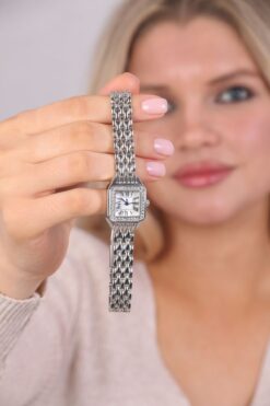 G-Sport POLO Gümüş Renk Çelik Kordon Roma Rakamlı Taşlı Kare Minimal Kadın Kol Saati