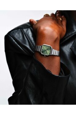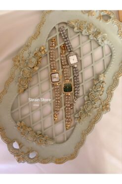 chaoyada Kare Kadran Vintage Zirkon Taşlı Yeşil Gümüş Gold Kadın Saat Özel kutusunda