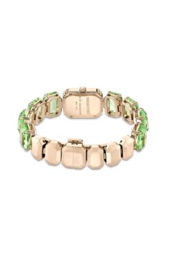 Swarovski Saat, Sekizgen Kesim Bileklik, Yeşil, Şampanya Altın Rengi Yüzey