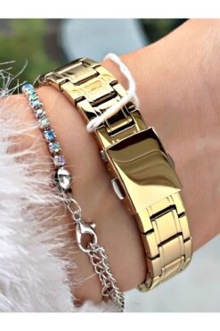 Daniel Klein Altın Sarısı Çelik Bilezik Taşlı Zarif Kadın Kol Saati, Taşlı Bileklik Hediyeli