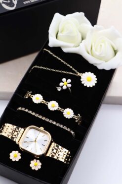 Northwatch Kişiye Özel Gold Kadın Saat, Papatya Bileklik Ve Beyaz Gül Set