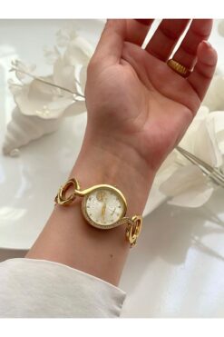 Forsining -TLAZE-(ALTIN RENK)altın kaplama halka kordon kadın kol saati-