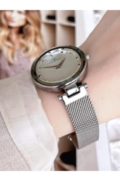 FERRO Silver Hasır Kordonlu Renk Atmaz 30 Metre Suya Dayanıklı Özel Tasarım Kadın KolSaati 21926