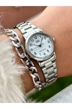 Q&Q Marka Çelik Kordon, Su Geçirmez, 2 Yıl Garantili Gümüş Renk Küçük Kasa Kadın Kol Saati+bileklik
