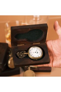 Ban Store Ahşap Kutulu Pirinç Köstekli Saat, Özel Zincirli Cep Saati