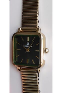 Daniel Klein Kadın Altın Kare Çerçeve Hasırlı Metal Kordon Kol Saati – Yeşil Kadran Modern Tasarım
