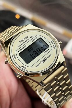 Ferrucci 3 Atm Su Geçirmez Gold Renk Çelik Kordon Unisex Dijital Kol Saati Elg631