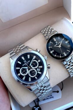 DÜZGÜN TİCARET 2 Adet Sevgili Çift Saati Çelik Erkek Ve Kadın Lüx 1. Sınıf Kol Saati Gold