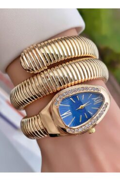 Merand Altın Renk Yılan Saat, Dolamalı Saat, Kadın Kol Saati