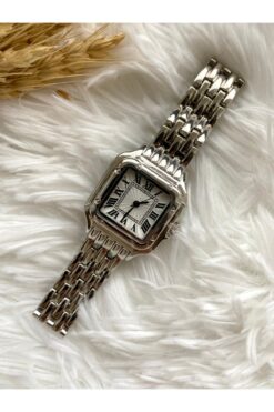 QUARTZ Kare Kasa Roma Rakamlı Kadın Vintage Kare Mini Gümüş Kol Saati / Retro Cart Series