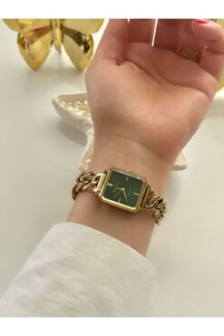 Ferrucci FERRUCCİ-(GOLD RENK) zincir detaylı yeşil iç kadran kadın kol saati