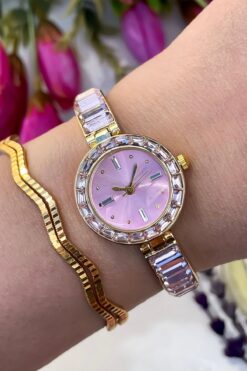 CLUPPOLOON Kesme taşlı pembe kadın kol saati