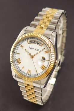 Ferrucci Sarı Beyaz Renk Çelik Kordon Sedef Kadran Kadın Kol Saati Fc.13024tm