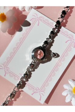 Harlofia Jewelry Kalp Charmlı Pembe Kol Saati