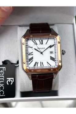 Ferrucci Erkek Saati Deri Kayışlı 3 Atm 2 Yıl Garantili, Bileklik Hediye