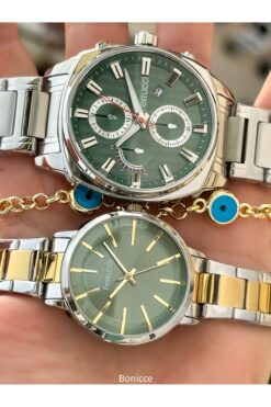 Ferrucci Marka Gümüş/Sarı Renk Çelik Kordon Sevgili , Çift Kol Saatleri Tesbih Bileklik Hediyeli